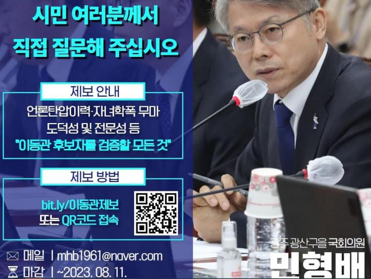 ¾ð·Ðź¾Ð, ÀÚ³à Çб³Æø·Â ÀºÆó, Àλçûʰú Àç»êÁõ½Ä ¹®Á¦ µî À̵¿°ü Èĺ¸ÀÚ¿Í °ü·ÃµÈ Áú¹® ¹× Á¦º¸´Â ¿Â¶óÀÎ ¼³¹®(https://bit.ly/À̵¿°üÁ¦º¸)À» ÅëÇØ Á¢¼öÇÑ´Ù. ¿µ»óÀº À̸ÞÀÏ(mhb1961@naver.com)·Î Á¦ÃâÇÏ¸é µÈ´Ù. ¸¶°¨ÀÏÀº ÀÌ´Þ 11ÀϱîÁö´Ù.