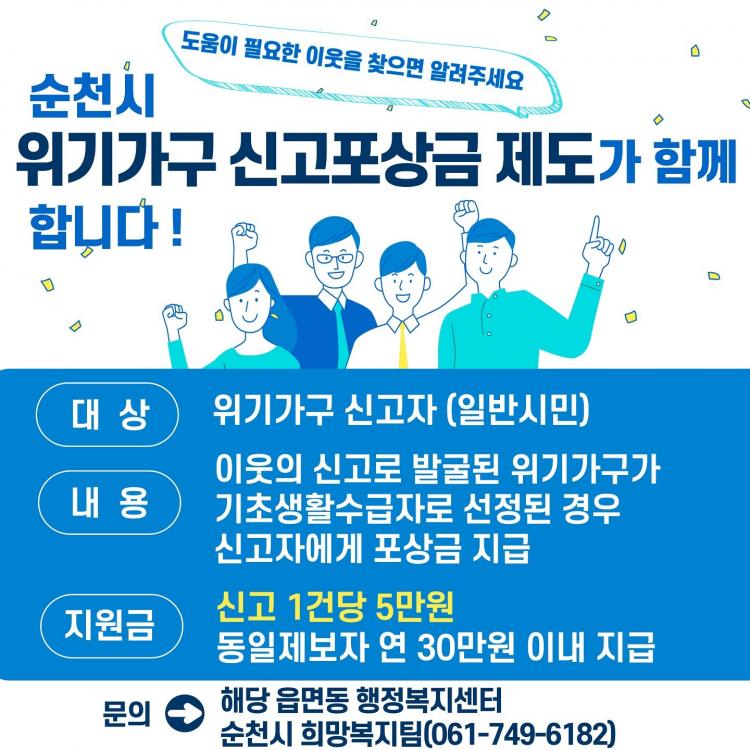 ½Ã´Â º¹Áö»ç°¢Áö´ë·Î ½Å°íµÈ ÁÖ¹ÎÀÌ ±âÃÊ»ýȰ¼ö±ÞÀÚ(»ý°è, ÀÇ·á ÁÖ°Å, ±³À°)·Î ¼±Á¤µÉ °æ¿ì À§±â°¡±¸¸¦ ½Å°íÇÑ Áֹο¡°Ô 1°Ç´ç 5¸¸ ¿ø(µ¿ÀÏÀÎÀÇ °æ¿ì ¿¬°£ ÃÖ´ë 30¸¸ ¿ø À̳»)ÀÇ Æ÷»ó±ÝÀ» Áö±ÞÇÑ´Ù.