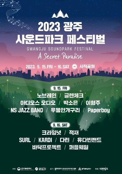 ±¤ÁÖ±¤¿ª½Ã(½ÃÀå °±âÁ¤)´Â ¿À´Â 15~16ÀÏ ±¤ÁÖ»çÁ÷°ø¿ø ÀÏ¿ø¿¡¼ ¡®2023 ±¤ÁÖ »ç¿îµåÆÄÅ©Æä½ºÆ¼¹ú¡¯À» °³ÃÖÇÑ´Ù. À̹ø ÃàÁ¦´Â ¹®ÈüÀ°°ü±¤ºÎ¿Í ±¤Áֽð¡ °øµ¿ÁÖÃÖÇÏ°í ±¤ÁÖÁ¤º¸¹®È»ê¾÷ÁøÈï¿ø ±¤ÁÖÀ½¾Ç»ê¾÷ÁøÈï¼¾ÅÍ ÁÖ°üÀ¸·Î ÆîÃÄÁø´Ù.