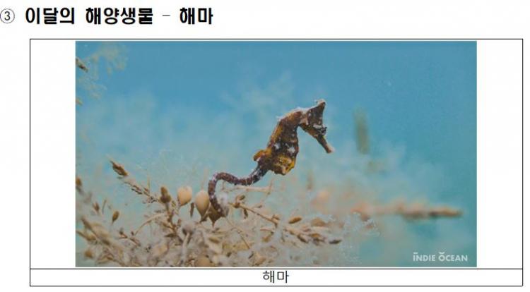 ÇØ¾ç¼ö»êºÎ(Àå°ü Á¶½Âȯ)´Â 10¿ùÀÇ ÇØ¾ç»ý¹°·Î ÇØ¸¶(Hippocampus haema)¸¦ ¼±Á¤ÇÏ¿´´Ù.