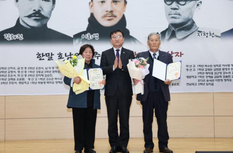 µ¶¸³À¯°øÀÚ Æ÷»ó¿¡¼± °í ÀÌõ¼® ´ÔÀÇ ¼ÕÀÚ ÀÌÇà¿í ´Ô°ú °í °íºÀ¾Ï ´ÔÀÇ ¼Õ³à °í¿µ¼ø ´ÔÀÌ ´ëÅë·É ǥâÀ» Àü¼ö¹Þ¾Ò´Ù. ÀÌõ¼® ´ÔÀº Áö³ÇØ ¼ÈÆÀ» ¹ÞÀº °í ÀÌ°è¿ ´ÔÀÇ ÀÚ³à·Î ºÎÀÚ°¡ ÇÔ²² µ¶¸³À¯°øÀÚ·Î À̸§À» ¿Ã·È´Ù.