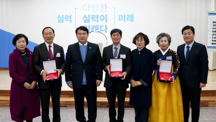À̳¯ Çà»ç´Â ±³À°°¨À» ºñ·ÔÇØ ±³Á÷¿ø°ú ¼ö»óÀÚ °¡Á· µîÀÌ Âü¼®ÇÑ °¡¿îµ¥ ¼ö»óÀÚ °øÀû¼Ò°³,
