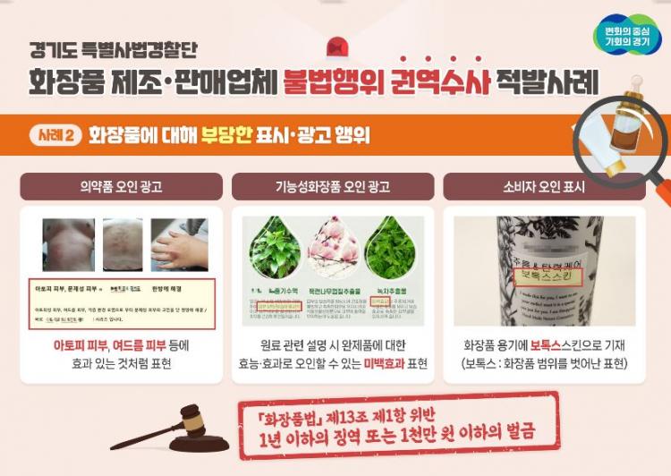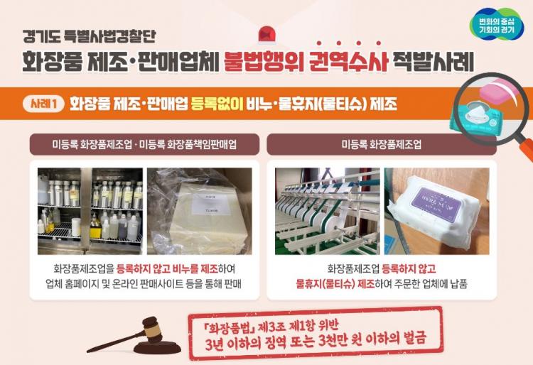 È«Àº±â °æ±âµµ Ưº°»ç¹ý°æÂû´ÜÀåÀº ¡°µµ¹ÎÀÇ °Ç°À» À§ÇùÇÏ´Â ¹«µî·Ï ÈÀåǰ Á¦Á¶¡¤ÆÇ¸Å¾÷ü¿Í °ÇÀüÇÑ ¼Òºñ¡¤À¯Åë½ÃÀå Áú¼¸¦ ¾îÁö·´È÷´Â ÇãÀ§°úÀå Ç¥½Ã¡¤±¤°í ÇàÀ§°¡ ¹Ýµå½Ã ±ÙÀýµÉ ¼ö ÀÖµµ·Ï ÃÖ¼±À» ´ÙÇϰڴ١±¸ç ¡°¾ÕÀ¸·Î ÀÌ·¯ÇÑ ºÒ¹ýÇàÀ§¸¦ °Þ°Å³ª ¸ñ°ÝÇϽаæ¿ì¿¡´Â Àû±ØÀûÀÎ ½Å°íÁ¦º¸¸¦ ¿äûµå¸°´Ù¡±°í ¸»Çß´Ù.