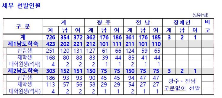 ½Ã¡¤µµº° ÀοøÀº Àü³²µµ 361¸í, ±¤Áֽà 362¸íÀ̸ç, Àå¾ÖÀÎ 3¸íÀº ½Ã¡¤µµ ±¸ºÐ ¾øÀÌ ¼±¹ßÇÑ´Ù.