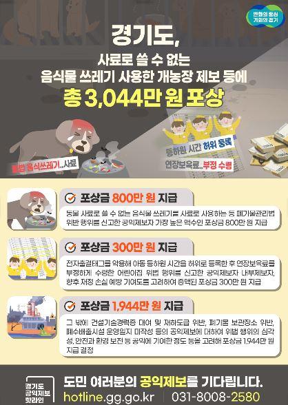°øÀÍÁ¦º¸´Â Àü´ã ½Å°í ⱸÀÎ ¡®°æ±âµµ °øÀÍÁ¦º¸ ÇÖ¶óÀÎ(hotline.gg.go.kr)¡¯¿¡ ½Å°íÇÒ ¼ö ÀÖÀ¸¸ç, Á¦º¸°¡ »ç½Ç·Î È®ÀεŠÇàÁ¤․»ç¹ý óºÐ µîÀÌ ÀÌ·ïÁö¸é ½Å°íÀÚ¿¡°Ô º¸»ó±Ý°ú Æ÷»ó±ÝÀ» Áö±ÞÇϰí ÀÖ´Ù.