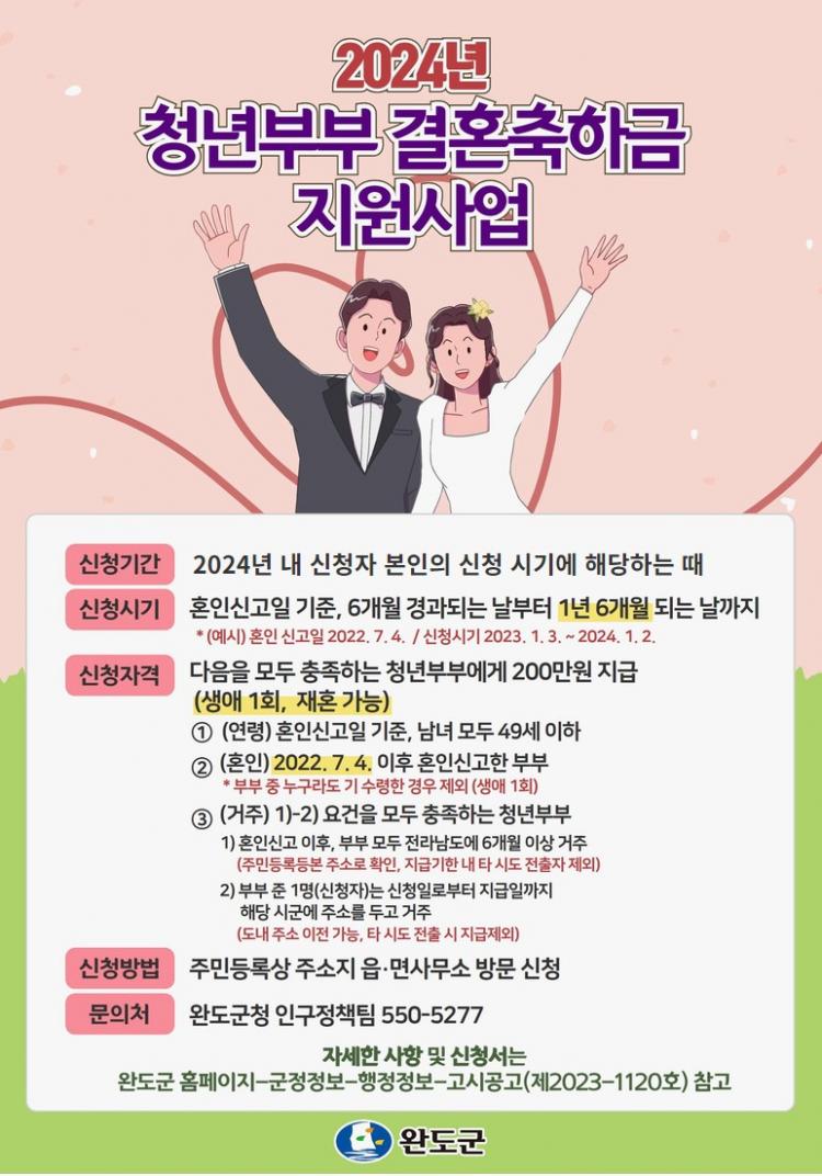 ±âŸ ÀÚ¼¼ÇÑ ³»¿ëÀº ¿Ïµµ±º ȨÆäÀÌÁö-±ºÁ¤ Á¤º¸-ÇàÁ¤ Á¤º¸-°í½Ã °ø°í(Á¦2023-1120È£)¸¦ Âü°íÇϰųª ¿Ïµµ±º Àα¸ÀÏÀÚ¸®Á¤Ã¥½Ç Àα¸Á¤Ã¥ÆÀ(¢Ï061-550-5277)À¸·Î ¹®ÀÇÇÏ¸é µÈ´Ù.