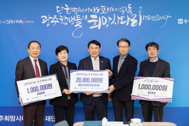 °°Àº ³¯ ½Ã±³À°Ã»ÀÌ µû¸£¸é À̹ø ±âºÎ±Ý Àü´Þ½Ä¿¡ ÀÌÁ¤¼± ±³À°°¨°ú ±è¼ºÁø ±¤ÁÖÈñ¸Á»ç´Ù¸®±³À°Àç´Ü ÀÌ»çÀåÀ» ºñ·ÔÇØ À¯Å¾¿£Áö´Ï¾î¸µ ÃÖ¼® ȸÀå, îñ¿°ÁÖÃÊ ¹®Àç¿Á ±³Àå, îñÀå´ö°í ÃÖÀ±±æ ±³Àå µîÀÌ Âü¼®ÇØ ÀÌ·ïÁ³´Ù. ÃÖ¼® ȸÀåÀº 2õ¸¸¿ø, ¹®Àç¿Á ±³Àå°ú ÃÖÀ±±æ ±³ÀåÀº À̹ø Çà»ç¸¦ ÅëÇØ °¢ 100¸¸¿øÀ» ±âºÎÇß´Ù.