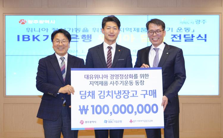 IBK±â¾÷ÀºÇàÀº ÀÌ¿Í ÇÔ²² ´ëÀ¯À§´Ï¾Æ±×·ì Áö¿ªÇù·Â¾÷üÀÇ À§±â±Øº¹°ú ÀÌ¿ôÀ» µ½±â À§ÇØ 1¾ï¿ø »ó´çÀÇ À§´Ï¾Æ µõä ±èÄ¡³ÃÀå°í¸¦ ±¤Áֽÿ¡ Àü´ÞÇß´Ù. µõä ±èÄ¡³ÃÀå°í´Â »çȸº¹Áö°øµ¿¸ð±Ýȸ¸¦ ÅëÇØ Áö¿ª»çȸÀÇ µ¹º½ÀÌ¿ô¿¡ Àü´ÞÇÒ ¿¹Á¤ÀÌ´Ù.