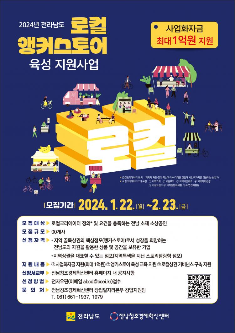 ¸ðÁý ´ë»óÀº ·ÎÄÃÅ©¸®¿¡ÀÌÅÍ Á¤ÀÇ ¹× ¿ä°ÇÀ» ÃæÁ·ÇÏ´Â Àü³²Áö¿ª ¼Ò»ó°øÀÎÀÌ´Ù. Áö¿ª ÀÚ¿øÀ» Ȱ¿ëÇÑ »óǰ ¹× °ø°£À» º¸À¯Çϰí ÀÖ°í Áö¿ª °ñ¸ñ»ó±ÇÀÇ ÇÙ½ÉÁ¡Æ÷·Î¼ ¼ºÀåÀ» Èñ¸ÁÇÏ´Â ¼Ò»ó°øÀÎÀÌ¸é ´©±¸³ª ½ÅûÇÒ ¼ö ÀÖ´Ù.