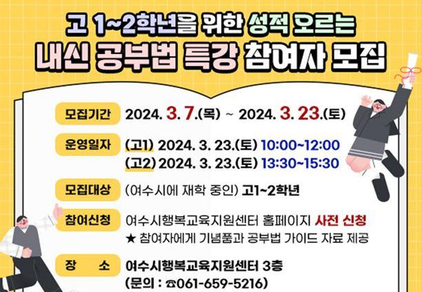 Âü¼®À» Èñ¸ÁÇÏ´Â ÇлýÀº ¿©¼ö½ÃÇູ±³À°Áö¿ø¼¾ÅÍ È¨ÆäÀÌÁö (www.yeosu.go.kr/edu)¿¡¼ »çÀü ½Åû ÈÄ Âü¼®ÇÒ ¼ö ÀÖÀ¸¸ç, ¸ðµç Âü¼®ÀÚ´Â ÄÚ³Ú ³ëÆ®¿Í °øºÎ¹ý °¡À̵å ÀÚ·áµµ Á¦°ø¹Þ´Â´Ù.