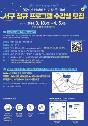 ÇÁ·Î±×·¥ ½ÅûÀº ¼¼Å«´ë, ¼±¸ ȨÆäÀÌÁö(http://365edu.seogu.gwangju.kr/)¹× ¡®³»¼Õ¿¡ ¼¼Å«´ë¼±¸¡¯ ¾Û(APP)¿¡ ȸ¿ø°¡ÀÔ ÈÄ °¡´ÉÇϰí, ¼ö°·á´Â ÇÁ·Î±×·¥º°·Î ¹«·á¿¡¼ 2¸¸¿ø±îÁöÀ̸ç, Àç·áºñ´Â °³ÀÎ ºÎ´ãÀÌ´Ù.