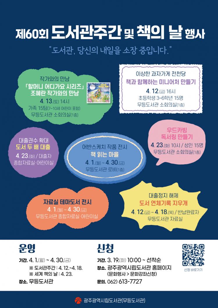 ¹«µîµµ¼°üÀº 4¿ù 1ÀϺÎÅÍ 30ÀϱîÁö ¡ã¡®ÇÒ¸Ó´Ï ¾îµð°¡¿ä ½Ã¸®Á Á¶Çý¶õ ÀÛ°¡¿ÍÀÇ ¸¸³² ¡ãÃ¥°ú ÇÔ²²ÇÏ´Â ¹Ì´Ï¾îó ¸¸µé±â ¡ã¿ìµåÄ«ºù µ¶¼¸µ ¸¸µé±â ¡ã¾î¹Ý½ºÄÉÄ¡ ÀÛǰÀü½Ã ¡®Ã¥ Àд ¸¶À»¡¯ µî 7°³ ÇÁ·Î±×·¥À» ¿î¿µÇÑ´Ù.