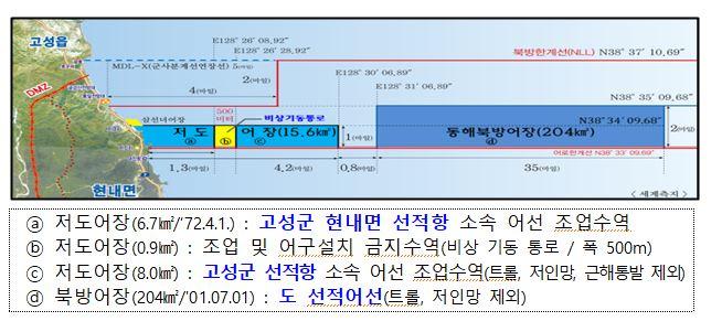 Àúµµ¾îÀåÀº ºÏ¹æÇѰ輱(NLL)°ú Á¶¾÷ÇѰ輱 »çÀÌ¿¡ À§Ä¡ÇÑ ÃÖ´ë Ȳ±Ý¾îÀåÀ¸·Î, ¸Å³â 4. 1.ºÎÅÍ 12. 31.±îÁö 9°³¿ù °£ Á¶¾÷ÀÌ ÀÌ·ç¾îÁö¸ç, Å©°í ¸ÀÀÌ ¿ùµîÇÏ¿© Àü±¹ÀûÀ¸·Î À¯¸íÇÑ ´ë¹®¾î¸¦ ºñ·ÔÇÑ ´ë°Ô, ÇØ»ï, ÇØÁ¶·ù µî ¾î¾÷ÀÎ ¹× °ü±¤°´µéÀÌ ¼±È£ÇÏ´Â ´Ù¾çÇÑ ¾îÁ¾ÀÌ ¾îȹµÈ´Ù.