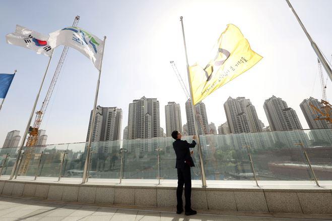 µµ´Â 7Àϰ£ ±¤±³ û»ç¿Í ÀÇÁ¤ºÎ ºÏºÎû»ç ±¹±â°Ô¾ç´ë¿¡ ¼¼¿ùÈ£ Ã߸ð±â¸¦ °Ô¾çÇÒ ¿¹Á¤ÀÌ´Ù. ¼¼¿ùÈ£±â´Â ¡®ÇϳªÀÇ ÀÛÀº ¿òÁ÷ÀÓÀÌ Å« ±âÀûÀ»¡¯À̶ó´Â ¹®±¸¿Í ÇÔ²² ³ë¶õ»ö ¹ÙÅÁ¿¡ °ËÀº ¸®º» ±×¸²À» ´ã°í ÀÖ´Ù.