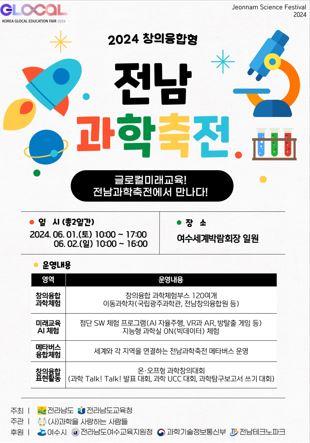 Àü¶ó³²µµ±³À°Ã»(±³À°°¨ ±è´ëÁß)Àº ¿À´Â 6¿ù 1~2ÀÏ ¿©¼ö¼¼°è¹Ú¶÷ȸÀå¿¡¼ ¡®Àü³²°úÇÐÃàÀü¡¯À» ¡®2024 ´ëÇѹα¹ ±Û·ÎÄà ¹Ì·¡±³À°¹Ú¶÷ȸ¡¯¿Í ¿¬°èÇØ °³ÃÖÇÑ´Ù. ÀÌ ÃàÁ¦¿¡´Â Àü³²ÀÇ µµ¼ Áö¿ª»Ó ¾Æ´Ï¶ó, ¿ï¸ªµµ Çлýµéµµ ¿Â¶óÀÎÀ¸·Î Âü¿©ÇÑ´Ù.