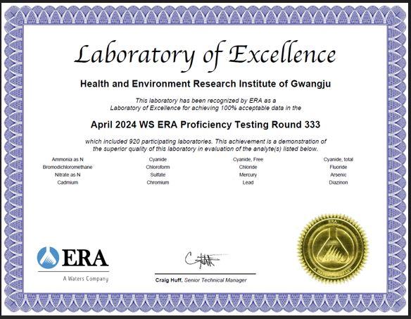 Á¤Çöö ±¤ÁÖº¸°Çȯ°æ¿¬±¸¿øÀåÀº ¡°±¹Á¦¼÷·Ãµµ ½ÃÇèÀ» ÅëÇØ ±¤ÁÖº¸°Çȯ°æ¿¬±¸¿øÀÇ ºÐ¼® ´É·ÂÀÇ ¿ì¼ö¼ºÀ» ´Ù½Ã È®ÀÎÇÒ ¼ö ÀÖ´Â °è±â°¡ µÆ´Ù¡±¸ç ¡°¾ÕÀ¸·Îµµ ¿¬±¸¿øÀÇ °Ë»ç Àü¹®¼º°ú µ¥ÀÌÅÍ ½Å·Úµµ¸¦ ³ô¿© ½Ã¹ÎÀÌ ¸Ô´Â¹°À» ¾È½ÉÇÏ°í ¸¶½Ç ¼ö ÀÖµµ·Ï ´õ¿í ³ë·ÂÇϰڴ١±°í ¸»Çß´Ù.