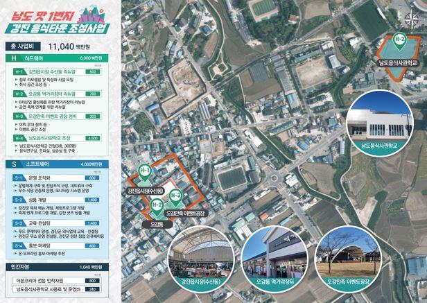 À̹ø¿¡ ¼±Á¤µÈ °Áø±ºÀÇ ¡®³²µµ ¸À 1¹øÁö À½½ÄŸ¿î Á¶¼º¡¯ »ç¾÷Àº °ÁøÀ¾ ½ÃÀå ¹× ¿À°¨Åë ÀÏ¿ø¿¡ ÃÑ»ç¾÷ºñ 110¾ï ¿ø(±¹ºñ 50¾ï ¿ø)À» ÅõÀÔÇØ ³²µµÀ½½Ä»ç°üÇб³ Á¶¼º, ½ÃÀå¼ö»êµ¿°ú ¸Ô°Å¸®ÀåÅÍ ¸®´º¾ó, ¿À°¨¸¸Á· À̺¥Æ® ±¤Àå Á¤ºñ µîÀ» ÅëÇØ ¿Ü½Ä¾÷ Ư¼ºÈ °ø°£À» Á¶¼ºÇÒ °èȹÀÌ´Ù.