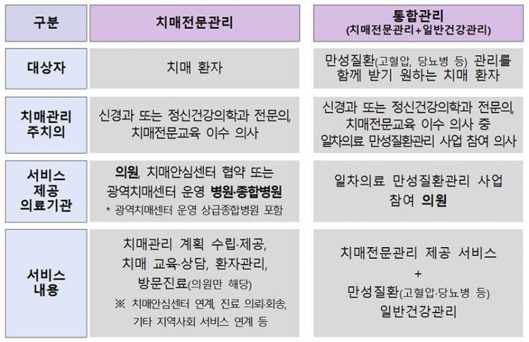 ±×¸®°í Ä¡¸ÅȯÀÚ¿Í ±× º¸È£ÀÚ¸¦ ´ë»óÀ¸·Î ÁÖ±âÀûÀ¸·Î Ä¡¸ÅÁúȯ°ú °ü¸®¹æ¹ý¿¡ ´ëÇÑ ´ë¸é ±³À°¡¤»ó´ã(¿¬ 8ȸ), ¾à º¹¿ëÀ̳ª ÇÕº´Áõ ¹ß»ý ¿©ºÎ µî¿¡ ´ëÇÑ ºñ´ë¸é °ü¸®(ÀüÈ ¶Ç´Â È»óÅëÈ ¿¬ 12ȸ) µîÀ» Á¦°øÇÑ´Ù.