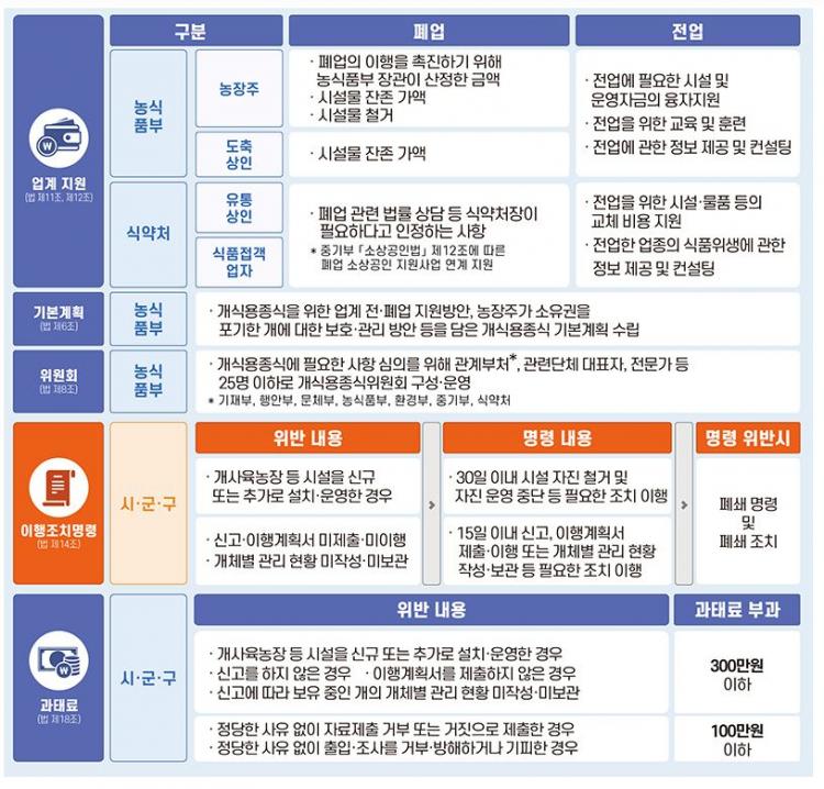 ³ó¸²Ãà»ê½ÄǰºÎ´Â 30ÀÏ ±¹¹«È¸ÀÇ ÀǰáÀ» °ÅÄ£ ¡®°³ÀÇ ½Ä¿ë ¸ñÀûÀÇ »çÀ°¡¤µµ»ì ¹× À¯Åë µî Á¾½Ä¿¡ °üÇÑ Æ¯º°¹ý(ÀÌÇÏ ¡®°³½Ä¿ëÁ¾½Ä¹ý¡¯) ½ÃÇà·É¾È¡¯ÀÌ ¿À´Â 7ÀÏ¿¡ ½ÃÇàµÈ´Ù°í ¹àÇû´Ù.