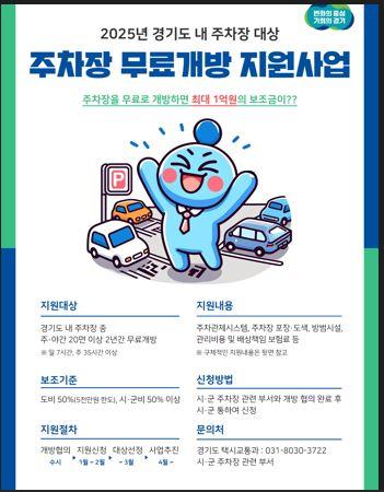 2019³âºÎÅÍ ½ÃÀÛÇÑ ¡®°æ±âµµ ¹«·á°³¹æÁÖÂ÷À塯Àº ½Ã±º°ú Çù·ÂÇØ ÁÖÂ÷Àå 20¸é ÀÌ»óÀ» 2³â°£ À¯ÁöÇϰí ÇÏ·ç 7½Ã°£, ÁÖ´ç 35½Ã°£ ÀÌ»óÀ» ¹«·á·Î °³¹æÇÏ¸é ºÎ¼³ÁÖÂ÷Àå ¹«·á°³¹æ¿¡ ÇÊ¿äÇÑ ½Ã¼³ °³¼±°ú °ü¸®¿ëµµ·Î 1°÷ ´ç ÃÖ´ë 1¾ï ¿ø(µµºñ º¸Á¶±Ý 50%, ½Ã±ººñ 50%)À» Áö¿øÇÏ´Â »ç¾÷ÀÌ´Ù.