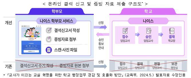 ¶ÇÇÑ, ´ãÀÓ±³»ç´Â ³ªÀ̽º(NEIS)¸¦ ÅëÇØ Çлý Ãâ°áÀ» °ü¸®ÇÒ ¼ö ÀÖ¾î ÇàÁ¤ ¾÷¹«°¡ °æ°¨µÉ °ÍÀ¸·Î ±â´ëµÈ´Ù. ´ãÀÓ±³»ç´Â ³ªÀ̽º¿¡¼ Çкθ𰡠Á¦ÃâÇÑ °á¼® ½Å°í ³»¿ë°ú Áõºù ¼·ù¸¦ È®ÀÎ ¹× ó¸®ÇÒ ¼ö ÀÖÀ¸¸ç, ¸ðµç ³»¿ëÀÌ ³ªÀ̽º¿¡ ÀúÀåµÇ±â ¶§¹®¿¡ º°µµÀÇ Ãâ·Â¹°À̳ª Áõºù ÀڷḦ º¸°üÇÒ Çʿ䰡 ¾ø´Ù.