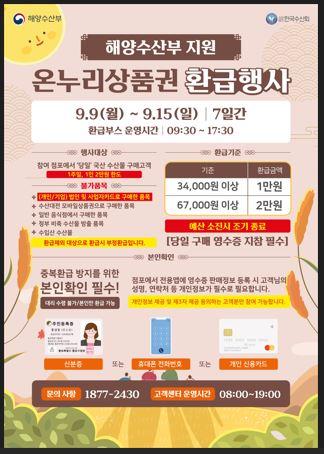 ¡®¿Â´©¸®»óǰ±Ç ȯ±ÞÇà»ç¡¯ ±â°£¿¡ ±¹³»»ê ¼ö»ê¹°À» ±¸ÀÔÇÏ¸é ´çÀÏ ±¸¸Å±Ý¾×ÀÇ 30%¸¦ ¿Â´©¸®»óǰ±ÇÀ¸·Î ȯ±Þ(1ÀÎ ÃÖ´ë 2¸¸¿ø)ÇØÁØ´Ù.