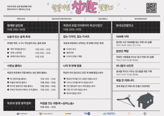 ÀÌ ÇÁ·ÎÁ§Æ®´Â Àü³²µµ, ¹«¾È±º, û°è¸é»óÀÎȸ, ¸ñÆ÷´ë ·ÎÄÃÅ©¸®¿¡ÀÌÅÍÀ°¼º»ç¾÷´Ü¡¤ÃÑÇлýȸ°¡ ÇÔ²² ÃßÁøÇÑ´Ù. Áö³ 17ÀϺÎÅÍ 8°¡Áö ¼¼ºÎ Çà»ç°¡ ½ÃÀ۵ƴÙ. ·ÎÄà Ŀ¹Â´ÏƼ »ì·ÕÀÎ ¡®100¹è ½ÄŹ¡¯°ú ¡®¾ø¾ú´ø Ã¥¹æ¡¯, »ó±Ç ¾ÆÄ«À̺ù ÇÁ·ÎÁ§Æ®ÀÎ ¡®¾ð´ÏµéÀÇ »çÁøÀü¡¯ µîÀÌ ¿¸®°í, »óÀÎ Çù·Â Ŭ·¡½º ¡®»çÀå´Ô Ŭ·¡½º¡¯µµ ¼±º¸ÀδÙ.