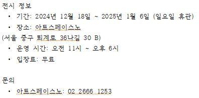 À̹ø Àü½Ã¿¡¼´Â Ưº°È÷ ¿Àµå¸® ÇݹøÀ» Å׸¶·Î ÀçÇØ¼®ÇÑ ÆÐºê¸¯ ¾ÆÆ® ÀÛǰµéÀÌ ¼±º¸À̸ç, Å©¸®½º¸¶½ºÀÇ µû¶æÇÔÀ» ´ãÀº ¿©½Åµé°ú ´ÞÀÇ ¿©½ÅÀ» ÁÖÁ¦·Î ÇÑ È·ÁÇÏ°í ¿ì¾ÆÇÑ ÀÛǰµéµµ Àü½ÃµË´Ï´Ù. Á¤±³ÇÑ µðÅ×Àϰú âÀÇÀûÀΠǥÇöÀ¸·Î ¿Ï¼ºµÈ ÀÛǰµéÀº °ü¶÷°´µé¿¡°Ô ¸¶Ä¡ µ¿È ¼ÓÀ» °Å´Ï´Â µíÇÑ ²Þ°°Àº °æÇèÀ» ¼±»çÇÕ´Ï´Ù.