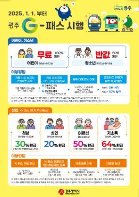 ƯÈ÷ ±¤ÁÖÁö¿ª ¾î¸°ÀÌ´Â ¹«·á, û¼Ò³âÀº ¹Ý°ªÀ¸·Î ´ëÁß±³ÅëÀ» ÀÌ¿ëÇÒ ¼ö ÀÖÀ¸¸ç, ¾î¸£½Å°ú Àú¼ÒµæÃþÀº ±âÁ¸ K-ÆÐ½º ȯ±Þ°ú ±¤ÁÖG-ÆÐ½º Ãß°¡ÇÒÀÎÀ» ´õÇØ °¢°¢ 50%, 64% ÇÒÀÎ ÇýÅÃÀ» ¹Þ´Â´Ù.