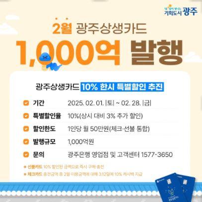 ±¤ÁÖ±¤¿ª½Ã(½ÃÀå °±âÁ¤)´Â ½Ãºñ 100¾ï¿øÀ» ÅõÀÔÇØ 2¿ù ÇÑ ´Þ°£ ±¤ÁÖ»ó»ýÄ«µå 10% Ưº°ÇÒÀÎÀ» ¿¬Àå ½ÃÇàÇÑ´Ù. ±âÁ¸ ±¤ÁÖ»ó»ýÄ«µå ÇÒÀÎÀ²Àº 7%´Ù.