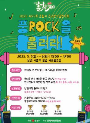 À̹ø Á¦95ȸ ÃáÇâÁ¦ Àü±¹ ¹êµå °æ¿¬´ëȸ ¡°Ç³ROCKÀ» ¿ï·Á¶ó!¡±´Â 5¿ù 5ÀÏ(¿ù) ~ 5¿ù 6ÀÏ(È) 2Àϰ£ ³²¿ø »ç¶ûÀÇ ±¤Àå ¾ß¿Ü°ø¿¬Àå¿¡¼ °³ÃÖµÉ ¿¹Á¤ÀÌ´Ù.