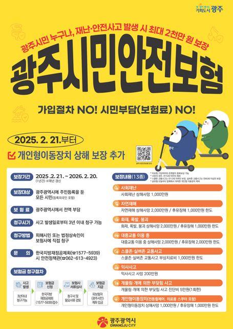 ¡®±¤ÁֽùξÈÀüº¸Ç衯 ´ë»óÀÚ´Â ±¤ÁÖ±¤¿ª½Ã¿¡ ÁÖ¼Ò¸¦ µÐ ½Ã¹Î(µî·Ï¿Ü±¹ÀÎ Æ÷ÇÔ) ¸ðµÎ°¡ º¸Àå´ë»óÀÌ´Ù. º°µµÀÇ °¡ÀÔÀýÂ÷¿Í º¸Çè·á ºÎ´ã ¾øÀÌ ÀÚµ¿ °¡ÀԵǸç, ±¤ÁÖ ÀÌ¿ÜÁö¿ª¿¡¼ ¹ß»ýÇÑ »ç°íµµ º¸Àå¹ÞÀ» ¼ö ÀÖ´Ù.