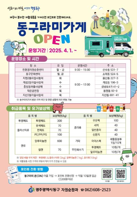 µ¿±¸¶ó¹Ì °¡°Ô´Â °¡Á¤¿¡¼ ±ú²ýÇÏ°Ô ¼¼Ã´ÇÏ°í ºÐ·ùÇÑ ÀçȰ¿ë °¡´É ÀÚ¿øÀ» °¡Á®¿À¸é ǰ¸ñº°·Î ¹«°Ô ±âÁØ¿¡ µû¶ó ÀÚ¿ø ¼øÈ¯ ÅëÇÕÇ÷§Æû ¾îÇà ¡®µ¿±¸¶ó¹Ì ¿Â¡¯ Æ÷ÀÎÆ®¸¦ Àû¸³, Çö±ÝÀ¸·Î º¸»óÇØ ÁØ´Ù. º¸»ó ǰ¸ñÀº Åõ¸í ÆäÆ®, ÇÃ¶ó½ºÆ½·ù, ĵ·ù, Á¾ÀÌ·ù, Á© ¾ÆÀ̽ºÆÑ µî 11°¡Áö°¡ ÇØ´çµÈ´Ù.