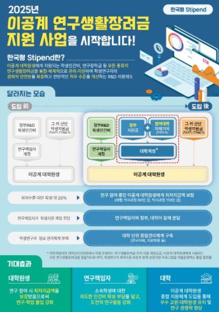 À̰ø°è ¿¬±¸»ýȰÀå·Á±Ý Áö¿ø »ç¾÷Àº À̰ø°è ´ëÇпø»ý¿¡°Ô ¾ÈÁ¤Àû ¿¬±¸ »ýȰÀ» Áö¿øÇÏ´Â 'Çѱ¹Çü ½ºÅ¸ÀÌÆæµå(Stipend)' µµÀÔÀ» À§ÇÑ ÀçÁ¤Áö¿ø »ç¾÷ÀÌ´Ù. Çѱ¹Çü ½ºÅ¸ÀÌÆæµå¶õ À̰ø°è ´ëÇпø»ý¿¡°Ô Áö±ÞµÇ´Â ÇлýÁö¿ø±ÝÀ» ÅëÇÕ¡¤Ã¼°èÀûÀ¸·Î °ü¸®ÇÔÀ¸·Î½á Çлý¿¬±¸ÀÚÀÇ °æÁ¦Àû ¾ÈÀü¸ÁÀ» È®ÃæÇϰí Àü¹ÝÀûÀΠó¿ì ¼öÁØÀ» °³¼±ÇÏ´Â R&D(¿¬±¸°³¹ß) Áö¿øÁ¦µµ´Ù.