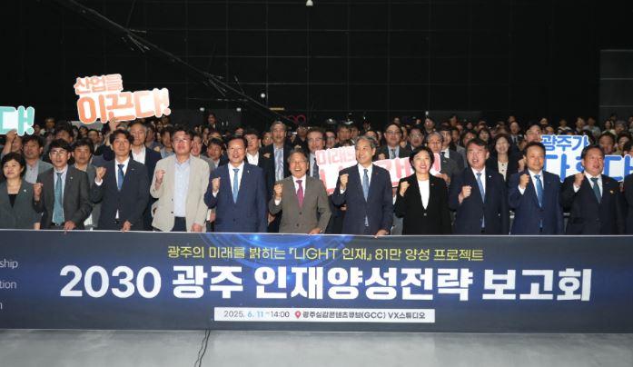 ±¤Áֽô º¸°íȸ¿¡¼ ¡®±¤ÁÖÀÇ ¹Ì·¡¸¦ ¹àÈ÷´Â LIGHT ÀÎÀç ¾ç¼º¡¯À̶ó´Â ºñÀü ¾Æ·¡ ¿À´Â 2030³â±îÁö AI¡¤µðÁöÅÐ, ¹ÝµµÃ¼, ¹®ÈÄÜÅÙÃ÷ µî Áö¿ªÀü·«»ê¾÷ÀÇ ¼ºÀåÀ» À̲ø »ê¾÷±â¼ú ÀÎÀç 35¸¸¸í ¾ç¼º°ú ¹Ì·¡±³À°µµ½Ã ±â¹Ý È®»êÀ» À§ÇÑ ÀÎÀç 46¸¸¸í µî ÃÑ 81¸¸¸íÀÇ ÀÎÀç À°¼ºÀ» ¸ñÇ¥·Î ÇÏ´Â ·Îµå¸ÊÀ» Á¦½ÃÇß´Ù.