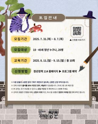°ÀÇ´Â 8¿ù 11ÀϺÎÅÍ 4ÁÖ°£ ÃÑ 10ȸ¿¡ °ÉÃÄ ¼øÃµ½Ã û³â¼¾ÅÍ¿¡¼ ÁøÇàµÇ¸ç. ¸ðÁý ´ë»óÀº ¸¸ 18¼¼ºÎÅÍ 45¼¼ ÀÌÇÏ Ã»³â 20¸íÀÌ´Ù.