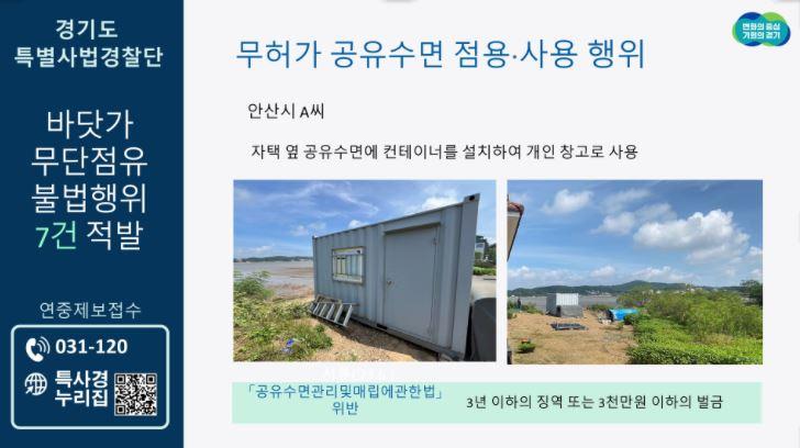 °æ±âµµÆ¯º°»ç¹ý°æÂû´ÜÀº ¿©¸§ ÈÞ°¡Ã¶À» ¸Â¾Æ µµ¹ÎÀÌ ¸¹ÀÌ Ã£´Â °æ±âµµ ¹Ù´å°¡ ÁÖº¯ ¹«´ÜÁ¡À¯ ÇàÀ§¸¦ ±ÙÀýÇØ ¾ÈÀüÇϰí ÄèÀûÇÑ ÇØ¾çȯ°æÀ» Á¶¼ºÇϱâ À§ÇØ °æ±âµµ ¿¬¾È 5°³ ½Ã(ȼº¡¤¾È»ê¡¤ÆòÅ᤽ÃÈ±èÆ÷) ¹Ù´å°¡ °øÀ¯¼ö¸é ¹× ¾îÇ×±¸¿ªÀ» ´ë»óÀ¸·Î ÁýÁß ¼ö»ç¸¦ ÆîÃÆ´Ù.