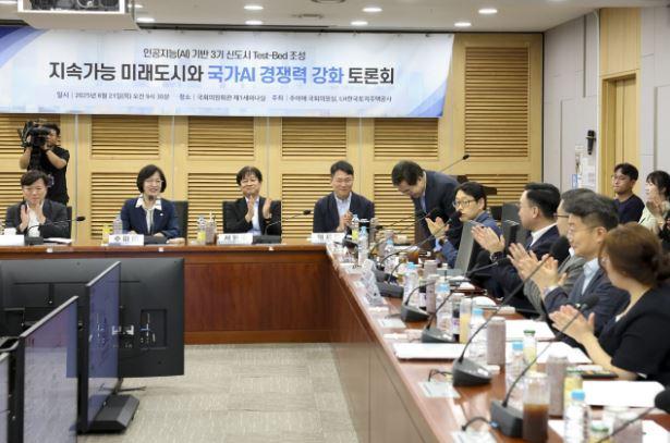 ÇÑÆí, Ãß¹Ì¾Ö ±¹È¸ÀÇ¿ø½Ç°ú Çѱ¹ÅäÁöÁÖÅðø»ç(LH)°¡ °øµ¿ ÁÖÃÖÇÑ À̹ø Åä·Ðȸ¿¡¼´Â µµ½Ã°èȹ°ú AI Àü¹®°¡µéÀÌ Âü¼®ÇÑ °¡¿îµ¥ ¡ã±Û·Î¹ú AI ÆÐ±Ç ÀüÀï°ú ¿ì¸®ÀÇ ´ë󹿡ãÇѱ¹Çü AI½ÃƼ ±¸ÇöÀ» À§ÇÑ Á¤Ã¥¹æÇâ°ú °úÁ¦ ¡ãÁö¼Ó°¡´ÉÇÑ 3±â ½Åµµ½Ã µµ½Ã°ø°£ Çõ½Å ¹æ¾ÈÀ» ³íÀÇÇß´Ù.