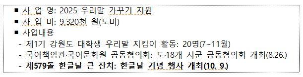 À̹ø Çà»ç´Â °¿øÆ¯º°ÀÚÄ¡µµ¿Í ¹®ÈüÀ°°ü±¤ºÎ, °¿ø´ëÇб³ Çѱ¹¾î¹®È¿ø, °¿ø´ëÇб³ ±¹¾î±¹¹®ÇÐ Àü°øÀÌ Çù·ÂÇØ ¸¶·ÃÇßÀ¸¸ç, Çѱ۳¯À» ±â³äÇÏ°í ¿ì¸®¸»ÀÇ °¡Ä¡¿Í Á߿伺À» ³Î¸® ¾Ë¸®±â À§ÇØ ÃßÁøµÈ´Ù.