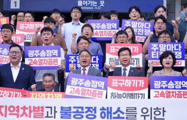 ¾Õ¼ ±¤Áֽô Áö³ 9¿ù23ÀÏ ±¤ÁÖ¼ÛÁ¤¿ª¿¡¼ Áö¿ª Á¤Ä¡±Ç, ½Ã¹Îµé°ú ÇÔ²² ¡®KTX È£³²¼± ÁõÆí Ã˱¸ °áÀÇ´ëȸ¡¯¸¦ °³ÃÖ, È£³²¼± ¿îÇà ºÒ°øÁ¤ ÇØ¼Ò¿Í ÁõÆí Çʿ伺À» Á¦±âÇß´Ù. ÀÌÈÄ °±âÁ¤ ½ÃÀåÀº ±èÀ±´ö ±¹Åä±³ÅëºÎ Àå°üÀ» ¸¸³ª ÁõÆíÀÇ ½Ã±Þ¼ºÀ» ÀçÂ÷ °Á¶ÇÏ´Â µî ´Ù°¢ÀûÀÎ ³ë·ÂÀ» ±â¿ï¿´´Ù.