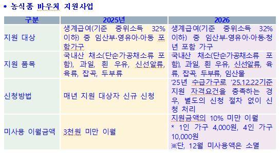 Áö¿ø ±â°£Àº ¿ÃÇØ 1¿ùºÎÅÍ 12¿ù±îÁö 12°³¿ùÀÌ´Ù. Áֹεî·Ï ÁÖ¼ÒÁö °üÇÒ À¾¸éµ¿ ÇàÁ¤º¹Áö¼¾Å͸¦ ¹æ¹®Çϰųª ¿Â¶óÀÎ(www.foodvoucher.go.kr)°ú ÀüÈ­(1551-0857)¸¦ ÅëÇØ ½ÅûÇÒ ¼ö ÀÖ´Ù.