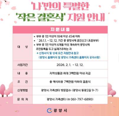 ±¤¾ç½Ã, ¡®³ª¸¸ÀÇ Æ¯º°ÇÑ ÀÛÀº °áÈ¥½Ä¡¯ ºñ¿ë Áö¿ø