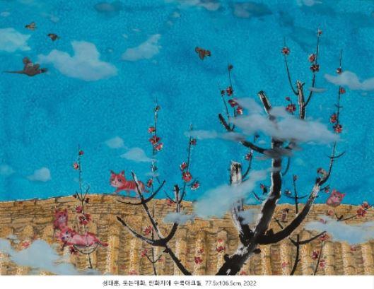 | Âü¿© ÀÛ°¡ ÀÛǰ(¼ºÅÂÈÆ, ¿ô´Â¸ÅÈ, ÆÇÈÁö¿¡ ¼ö¹¬¾ÆÅ©¸±, 77.5x106.5cm, 2022)<½Å¾È±º> |